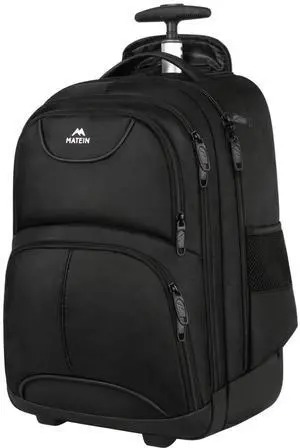 MATEIN Wheeled Backpack, 18 inch Laptop Backpack with Wheels for College, Rolling Travel Backpack, Carryon Trolley Luggage Suitcase Compact Business Computer Bag for Men Women, Black