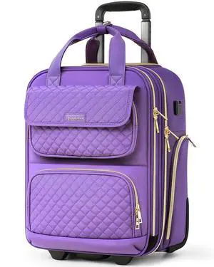 Arcoyard Underseat Carry On Luggage with Wheels, Airline Approved Personal Item Bag, 16-Inch Multi-functional Rolling Laptop Bag, Lightweight Overnight Suitcase for Women, Bussiness, Travel, Purple