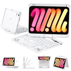 Tiaota Transparent Case with Keyboard for iPad mini 7 A17 Pro(2024) & Mini 6 (2021) 8.3",7-Color Backlit,Wireless Keyboard, 360Rotating,with trackpad,Pencil Holder,with Shortcuts,White