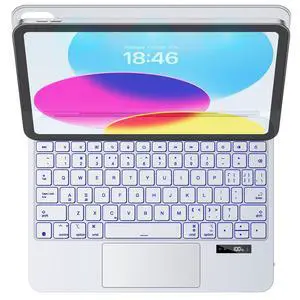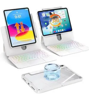 avakot Keyboard Case for iPad A16 11th Gen 11" 2025/ 10th Gen 10.9" 2022, Clear Detachable Magnetic 360 Rotatable & Liftable Cover, 7-Color Backlit, Native Gesture Trackpad, 180 Kickstand, White
