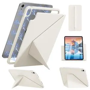 KenKe Magnetic Stand Case for iPad (A16) 11th/10th Generation (2025/2022) 11/10.9 Inch, Removable Shockproof Rugged PC Cover with Pencil Holder, LightweightStrong Magnetic Attachment, Cream White