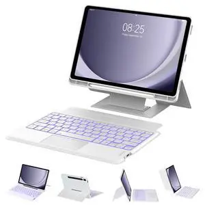 Keyboard Case for Samsung Galaxy Tab A9 Plus 11 Inch 2023, Raised Floating Stand Keypad for Samsung Tablet A9+ Folio with Trackpad, Touchpad Case for Galaxy Tab A9Plus with Backlit, Pen Holder, White