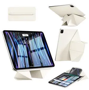 PITAKA iPad Pro 12.9 Case, Lightweight & Multi-fold Folio with Magnetic Apple Pencil Holder, Compatible with iPad Pro 12.9'' (2022/2021/2020/2018), and iPad Air M3/M2 13 Inch - White