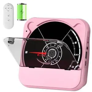Portable CD Player with Bluetooth, Rechargeable Wireless Mini Desktop for Home with HiFi Speaker, Cute CD Player Remote Control, LCD Display, Supports CD/FM Radio/USB/AUX/Timer/Repeat, Pink