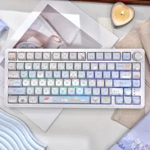 JVFYI Maoben M75 Knob Mechanical Keyboard - Triple Mode RGB Backlit Wireless Gaming Keyboard for Girls (Cute Pink, 8000mAh Battery) M75 [White]+ Wangwang Brigade MAO keycaps