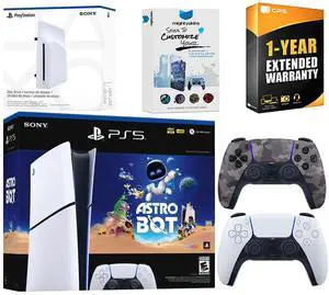 Sony PlayStation 5 Astro Bot Slim Digital Bundle with Disc Drive, Extra Controller, MightySkins Voucher and 1 Year Extended Warranty - Gray Camo