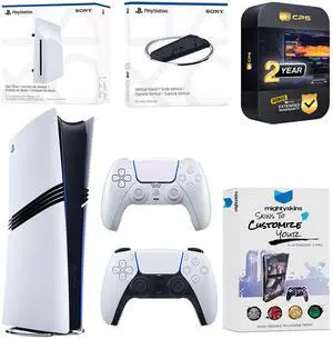 Sony PlayStation 5 Pro Digital Bundle with Disc Drive, Extra Controller, Vertical Stand, MightySkins Voucher and 2 Year Extended Warranty - Chroma Pearl