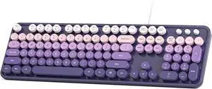 Wired Retro Keyboard, 104 Keys Full-Sized Typewriter Keyboards, Office Keyboard with Number Pad, Foldable Stands for Windows, PC, Laptop, Desktop (Purple Gradient)