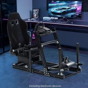 Minneer Racing Sim Cockpit with Black Seat Fit for Logitech/Thrustmaster/Fanatec/PXN G29, Adjustable Gaming Simulator Stand, Wheel,Pedal & Shifter Not Include