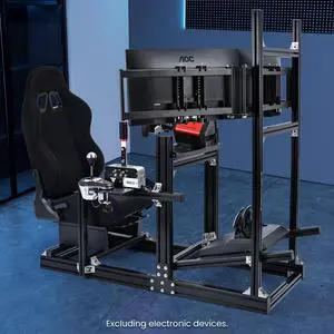 Minneer Universal Flight Simulation Cockpit with Racing Seat or Racing Wheel Stand Adjustable Compatible with Thrustmaster HOTAS Warthog,Logitech G29 G920 Wheels,Pedals,Throttle,Joystick Not Included