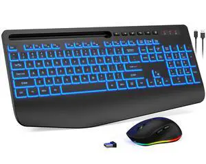 Wireless Gaming Mouse Bluetooth Mouse RGB Rechargeable 2.4G USB Cordless Computer Mice with 7 Color Backlit, 6 Buttons & Silent Click for Laptop, iPad, Mac OS, PC, Windows -Black