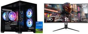 ABS Cyclone Aqua Gaming PC - Windows 11 - Intel Core 5 120 - Intel Arc A580 - 32GB DDR4 3200MHz - 1TB M.2 SSD ABS 34" Ultrawide UWQHD 2K 1440P (Quasi 4K) 240Hz with AMD FreeSync 1ms HDR400 1500R Curved Gaming Computer Monitor with Height A