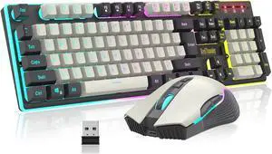 60% Wireless Gaming Keyboard and Mouse Combo,Ice Blue Backlit Rechargeable 2000mAh Battery,Mini Mechanical Feel Anti-ghosting Keyboard + Popular RGB Mice for Gaming, Office(White-Black)