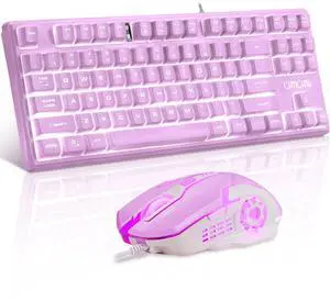 Pink Gaming Keyboard and Mouse Combo with LED, 104 Keys Wired Light Up Pink Keyboard and Cute Mouse Set for PC Laptop Computer PS4 PS5 Xbox, 19 Keys Anti-ghosting, Multimedia Keys, Number Pad