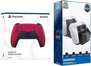 Sony PlayStation 5 DualSense Wireless Controller with Dual Charging Dock Station Bundle - Cosmic Red
