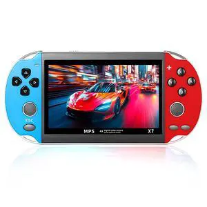X7 Plus Handheld Game Console , Preload 10000 Games Portable Video Games Support HDMI Output & Double Player Classic Arcade Retro Game Player (4.3" Screen Red & Blue)