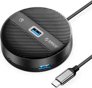 USB Hub for Latop, ORICO ABS USB c to USB Multiport Adapter with 3 USB 3.0 Ports(5Gbps), 1x 3.5mm Audio Port, Expander for Laptop, Xbox, Flash Drive, HDD, Console, Printer, Camera,Keyborad, Mouse- Color: Black
