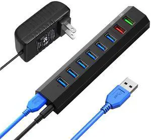 Powered USB Hub, Aiibe 8-Port USB Hub 3.0 Powered USB Splitter with 2 Fast Charging Ports + 12V/3A Power Adapter + USB 3.0 Cable, USB Hub Powered 36W Adapter for Laptop, Mac, PC, Mobile HDD (Black)
