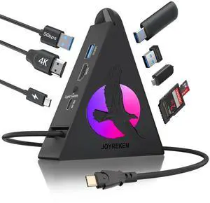 USB C Hub, 8-in-1 Type C Hub with 4K HDMI, 100W Power Delivery, 5Gbps USB-C, 3xUSB-A 3.0, SD/TF Card Reader, RGB Lighting, Dock for MacBook Air/Pro, iPad, iPhone17, Surface, XPS, etc.- Brand: JoyReken