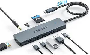 KIROSA USB-C Hub, 5 Ports USB 3.0, 4K HDMI, DisplayPort, USB Type-C Adapter