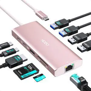 USB C Hub Multiport Adapter, 10-in-1 Laptop USB C Docking Station for Dell/HP Laptop, Type C Dock to 4K HDMI,Ethernet,100W PD,3USB 3.0, 2USB 2.0, SD/TF, Thunderbolt Dock for MacBook, Surface, Lenovo- Brand: HODO