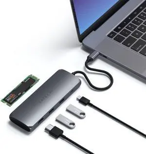 USB C Hub Multiport Adapter with M.2 SATA SSD Enclosure, 4K HDMI, 100W USB C PD Charging, 2 USB-A Data Ports, for MacBook & Windows - Space Gray