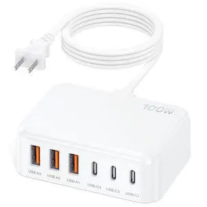 USB Charger,100W USB Charging Station with 10-Port(6 USB-A Port&2 USB-C Port&2 PD20W) Compatible with iPhone 15/14/13/13pro Max 12/12 Mini/12Pro/12 Pro Max/11,Tablets, Smartphones White