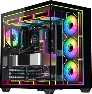 MONTECH, KING 95 PRO Dual-Chamber ATX Mid-Tower PC Gaming Case, High-Airflow, Toolless Panels, Sturdy Curved Tempered Glass Front, Six ARGB PWM Fan Pre-installed with Fan Hub, Black