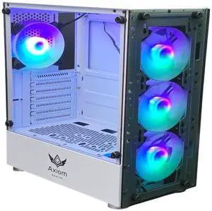 Axiom Gaming Nova Series C013 ATX Mid-Tower PC Gaming Case | Built-in RGB Lighting | Tempered Glass Front & Side Panels | 4 x 120mm RGB Fans Included | Fan Controller With Remote | White