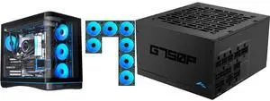 SAMA V62 Mid-Tower PC Case, 7x120mm Pre-Installed ARGB PWM Fans, 4mm Tempered Glass, USB 3.1 Type-C & USB 3.0 Ports, 7 Slots, Support ATX/MATX/ITX, Back-Connect Ready, Black and SAMA G750P 750W ATX 3.1 Fully Modular Power Supply, Cybenetics Gold Certified, PCIe 5.1 Ready 12V-2x6 (450W), Full Bridge LLC + DC-DC Design, 120mm FDB Silent Fan, Gaming PC PSU - $214.98