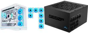 SAMA V62 Mid-Tower PC Case, 7x120mm Pre-Installed ARGB PWM Fans, 4mm Tempered Glass, USB 3.1 Type-C & USB 3.0 Ports, 7 Slots, Support ATX/MATX/ITX, Back-Connect Ready, White and SAMA G650P 650W ATX 3.1 Fully Modular Power Supply, Cybenetics Gold Certified, PCIe 5.1 Ready 12V-2x6 (450W), Full Bridge LLC + DC-DC Design, 120mm FDB Silent Fan, Gaming PC PSU - $209.98