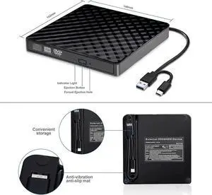 _Mega Brand External CD/DVD Drive for Laptop with USB 3.0 & Type-C, Portable DVD Burner, External Disc Drive, CD Reader for Laptop, Lightweight USB CD/DVD External Drive Compatible with PC