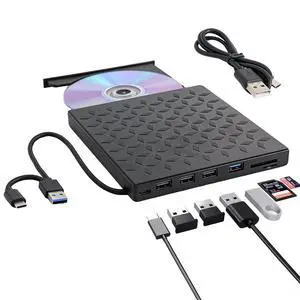 [7 in 1] Multifunction External CD/DVD Drive for Laptop, USB 3.0 & Type C DVD Player CD ROM Portable CD/DVD Burner, External DVD Drive Compatible with Laptop Desktop PC Windows 11/10/8/7 Linux MacOS