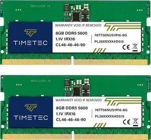 Timetec 16GB KIT(2x8GB) DDR5 5600MHz PC5-44800 Unbuffered Non-ECC 1.1V CL46 1Rx16 Single Rank 262Pin SODIMM Laptop Memory RAM Module Upgrade