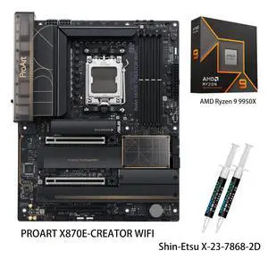 ASUS ProArt X870E-CREATOR WIFI Motherboard & AMD Ryzen 9 9950X CPU Combo, AM5 ATX , PCIe 5.0 x16 slots with full support for next-gen GPUs, DDR5, dual USB4, 10 Gb & 2.5 Gb LAN, WiFi 7, four M.2 slot