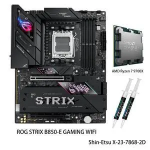 ASUS ROG Strix B850-E Gaming WiFi Motherboard & AMD Ryzen 7 9700X CPU Combo, AM5 B850 ATX 16+2+2 Stages, Dynamic OC, Core Flex,DDR5 w/AEMP, WiFi 7, 5X M.2, 5G LAN, PCIe 5.0,USB4, USB 20Gbps Type-C,AI- Model #: ROG STRIX B850-E GAMING WIFI+R7 9700X