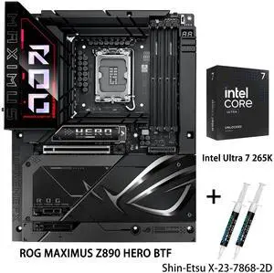 ASUS ROG MAXIMUS Z890 HERO BTF motherboard & Intel Core Ultra 7 265K CPU Comb, Z890 LGA 1851 ATX , hidden-connector design, AI PC Ready, DDR5, WiFi 7, 2.5G LAN, 6x M.2, PCIe 5.0, Thunderbolt 4, AI OC- Model #: ROG MAXIMUS Z890 HERO BTF+Ultra 7 265K