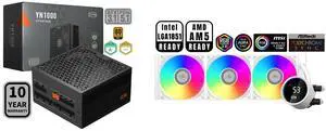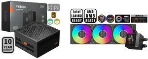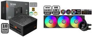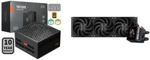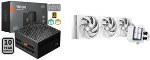 PCCOOLER CPS YN1000 Fully Modular Power Supply, 80 PLUS Gold 1000W PSU, 12V-2x6 Cable, ATX 3.1 & PCIe 5.1 Ready, 105°C Rated Japanese Capacitors, ECO Mode, 135mm FDB Fan, 10 Years Warranty and PCCOOLER CPS DA360 Pro ARGB AIO CPU Liquid Cooler, 360mm Radiator, 300W TDP, 360° Rotatable Waterblock, Infinity Halo ARGB Effect, for Intel LGA20XX/1851/1700/1200/115X & AMD AM5/AM4, White