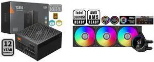 PCCOOLER CPS YS850 Fully Modular Power Supply, 80 PLUS Gold 850W PSU, 12V-2x6 Cable, ATX 3.1 & PCIe 5.1 Ready, 105°C Rated Japanese Capacitors, ECO Mode, 135mm FDB Fan, 12 Years Warranty and PCCOOLER CPS DA360 Pro ARGB AIO CPU Liquid Cooler, 360mm Radiator, 300W TDP, 360° Rotatable Waterblock, Infinity Halo ARGB Effect, for Intel LGA20XX/1851/1700/1200/115X & AMD AM5/AM4, White