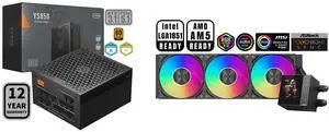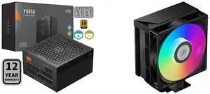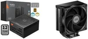 PCCOOLER CPS YS850 Fully Modular Power Supply, 80 PLUS Gold 850W PSU, 12V-2x6 Cable, ATX 3.1 & PCIe 5.1 Ready, 105°C Rated Japanese Capacitors, ECO Mode, 135mm FDB Fan, 12 Years Warranty and PCCOOLER CPS RT500 TC ARGB CPU Air Cooler, 5 Direct Contact Heat Pipes, 245W TDP, 152mm Tall, 120mm PWM Slient ARGB Fan, for Intel LGA1851/1700/1200/115X & AMD AM5/AM4, Black