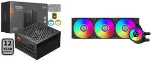 PCCOOLER CPS YS1200 Fully Modular Power Supply, 80 PLUS Gold 1200W PSU, 12V-2x6 Cable, ATX 3.1 & PCIe 5.1 Ready, 105°C Rated Japanese Capacitors, ECO Mode, 135mm FDB Fan, 12 Years Warranty and PCCOOLER CPS DA360 Pro ARGB AIO CPU Liquid Cooler, 360mm Radiator, 300W TDP, 360° Rotatable Waterblock, Infinity Halo ARGB Effect, for Intel LGA20XX/1851/1700/1200/115X & AMD AM5/AM4, Black