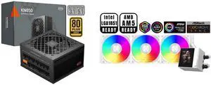 PCCOOLER CPS KN650 Fully Modular Power Supply, 80 PLUS Gold 650W PSU, Native 12V-2x6 Connector, ATX 3.1 & PCIe 5.1 Ready, Dual CPU Power Cables, 105°C Rated Japanese Capacitors, P3-KN650-G1F and PCCOOLER CPS DA240 ARGB AIO CPU Liquid Cooler, 240mm Radiator, 260W TDP, Infinity Halo ARGB Effect, High-Performance 3000RPM Pump Speed, for Intel LGA 20XX/1851/1700/1200/115X & AMD AM5/AM4, White