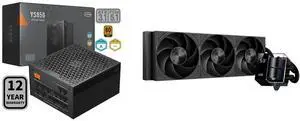 PCCOOLER CPS YS1200 Fully Modular Power Supply, 80 PLUS Gold 1200W PSU, 12V-2x6 Cable, ATX 3.1 & PCIe 5.1 Ready, 105°C Rated Japanese Capacitors, ECO Mode, 135mm FDB Fan, 12 Years Warranty and PCCOOLER CPS DA360 Pro ARGB Digital AIO CPU Liquid Cooler, 360mm Radiator, 300W TDP, 270° Rotatable Digital Display, Infinity Halo ARGB Effect, for Intel LGA 1851/1700/1200/115X & AMD AM5/AM4, Black