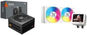 PCCOOLER CPS KN1000 Fully Modular Power Supply, 80 PLUS Gold 1000W PSU, Native 12V-2x6 Connector, ATX 3.1 & PCIe 5.1 Ready, Dual CPU Power Cables, 105°C Rated Japanese Capacitors, P3-KN1000-G1F and PCCOOLER CPS GT240 ARGB Display AIO CPU Liquid Cooler, 240mm Radiator, 280W TDP, Customizable 3.5" IPS LCD Cyber Style Display, Ceramic Bearing, for Intel LGA 1851/1700/1200/115X & AMD AM5/AM4, White
