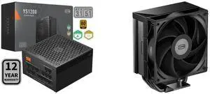 PCCOOLER CPS YS1200 Fully Modular Power Supply, 80 PLUS Gold 1200W PSU, 12V-2x6 Cable, ATX 3.1 & PCIe 5.1 Ready, 105°C Rated Japanese Capacitors, ECO Mode, 135mm FDB Fan, 12 Years Warranty and PCCOOLER CPS RT500 TC ARGB CPU Air Cooler, 5 Direct Contact Heat Pipes, 245W TDP, 152mm Tall, 120mm PWM Slient ARGB Fan, for Intel LGA1851/1700/1200/115X & AMD AM5/AM4, Black