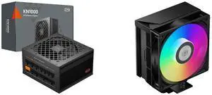 PCCOOLER CPS KN1000 Fully Modular Power Supply, 80 PLUS Gold 1000W PSU, Native 12V-2x6 Connector, ATX 3.1 & PCIe 5.1 Ready, Dual CPU Power Cables, 105°C Rated Japanese Capacitors, P3-KN1000-G1F and PCCOOLER CPS RZ400 V2 CPU Air Cooler, 4 Direct Contact Heat Pipes, 240W TDP, Aluminum Top Cover, 155mm Tall, 120mm PWM Slient Fan, for Intel LGA 1851/1700/1200/115X & AMD AM5/AM4, Black