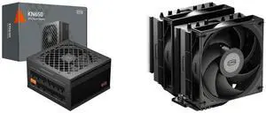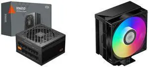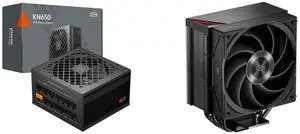 PCCOOLER CPS KN650 Fully Modular Power Supply, 80 PLUS Gold 650W PSU, Native 12V-2x6 Connector, ATX 3.1 & PCIe 5.1 Ready, Dual CPU Power Cables, 105°C Rated Japanese Capacitors, P3-KN650-G1F and PCCOOLER CPS RZ620 Dual Tower CPU Air Cooler, 6 Heat Pipes, 275W TDP, Aluminum Top Cover, 157.5mm Tall, 120mm PWM Silent Fans w/ 3 Modes, for Intel LGA 1851/1700/1200/115X & AMD AM5/AM4, Black