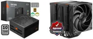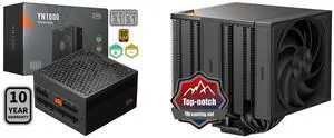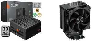 PCCOOLER CPS YN1000 Fully Modular Power Supply, 80 PLUS Gold 1000W PSU, 12V-2x6 Cable, ATX 3.1 & PCIe 5.1 Ready, 105°C Rated Japanese Capacitors, ECO Mode, 135mm FDB Fan, 10 Years Warranty and PCCOOLER CPS RZ820 Dual Tower CPU Air Cooler, 8 Heat Pipes, 290W TDP, Magnetic Aluminum ARGB Top Cover, 165mm Tall, 120mm & 140mm PWM Fans, for Intel LGA 1851/1700/1200/115X/20XX & AMD AM5/AM4, Black
