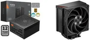 PCCOOLER CPS YS850 Fully Modular Power Supply, 80 PLUS Gold 850W PSU, 12V-2x6 Cable, ATX 3.1 & PCIe 5.1 Ready, 105°C Rated Japanese Capacitors, ECO Mode, 135mm FDB Fan, 12 Years Warranty and PCCOOLER CPS RT620Pro Digital Dual Tower CPU Air Cooler, 6 Heat Pipes, 265W TDP, Digital Display Top Cover, 157mm Tall, Reinforced Structure, for Intel LGA1851/1700/1200/115X & AMD AM5/AM4, Black