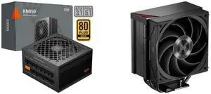 PCCOOLER CPS KN850 Fully Modular Power Supply, 80 PLUS Gold 850W PSU, Native 12V-2x6 Connector, ATX 3.1 & PCIe 5.1 Ready, Dual CPU Power Cables, 105°C Rated Japanese Capacitors, P3-KN850-G1F and PCCOOLER CPS RZ400 V2 CPU Air Cooler, 4 Direct Contact Heat Pipes, 240W TDP, Aluminum Top Cover, 155mm Tall, 120mm PWM Slient Fan, for Intel LGA 1851/1700/1200/115X & AMD AM5/AM4, Black